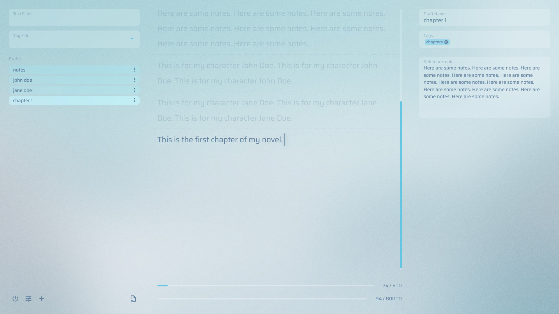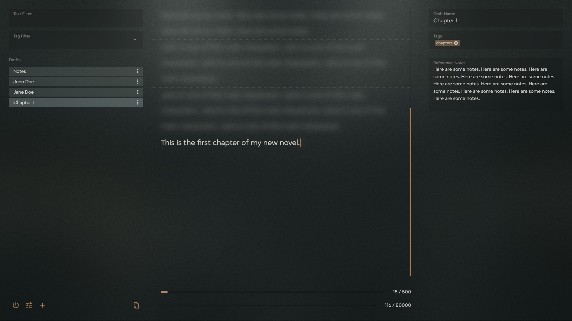 It makes writing the first draft of your novel easier by improving the writing experience. It pulls you into your story with audio-visual themes, makes you feel comfortable in your writing space with its minimalist approach, and helps you hit your target word count with features that inspire momentum.